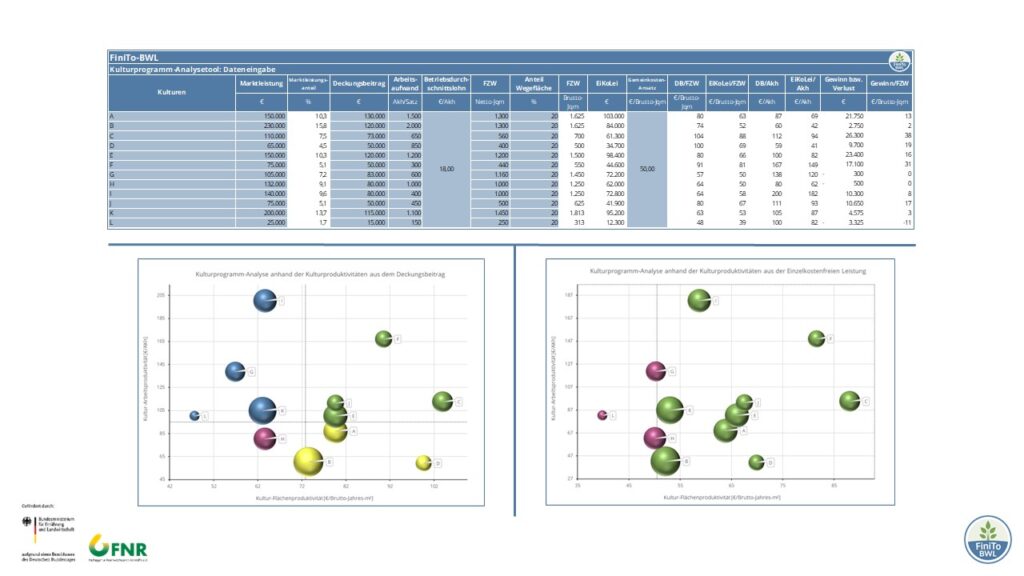 Kulturprogramm – AnalysetoolVon / Mit dem Kulturprogramm-Analysetool können die eigenen Kulturen im gesamtbetrieblichen Kontext hinsichtlich ihrer betriebswirtschaftlichen Ergebnisse und Produktivitäten miteinander verglichen werden. Download ZurückBetriebsdurchschnittslohn Anleitung zum Kulturprogramm-AnalysetoolNächster
